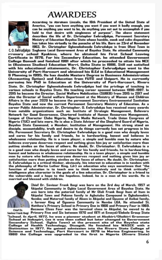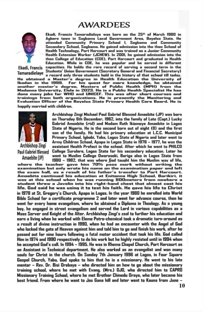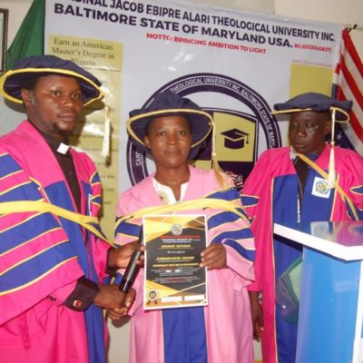 On behalf of the Bayelsa State chapter of the Ignatius Ajuru University of Education Alumni, the State Exco express their gratitude to the institute ‘Cardinal Jacob Ebipre Alari Theological University Baltimore State of Maryland USA. For the conferment of the ward of Honorary Doctorate Degree to the Chairman of Ignatius Ajuru University of Education Alumni, Bayelsa State Chapter, Dr. KARINABO NATHS BENIBO and Elder Dr. LEWIS OMBU SAWARE. The awards are absolutely on merit and not political or financially motivated rather, it’s on moral exhibition.