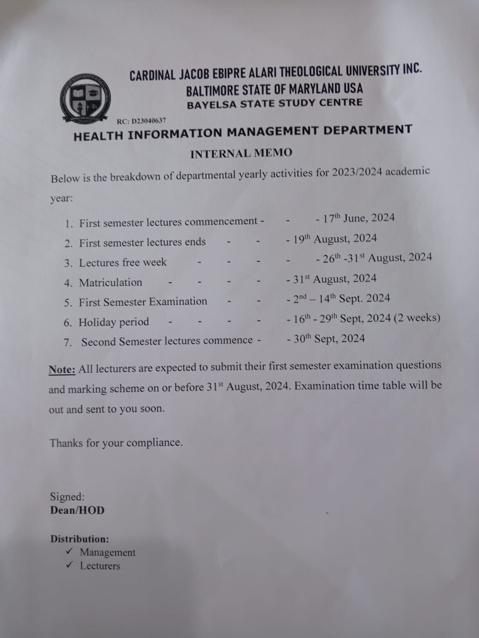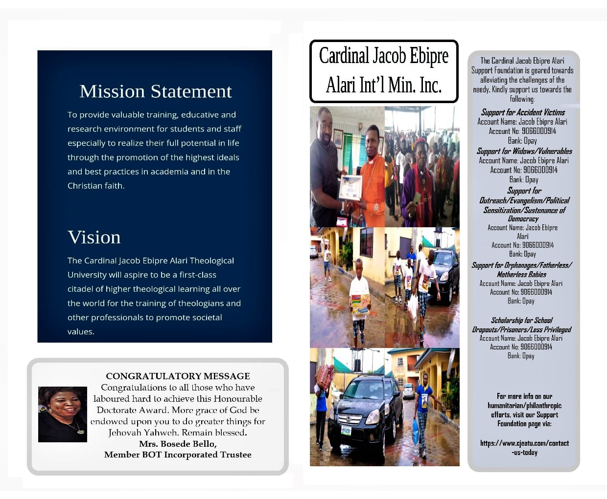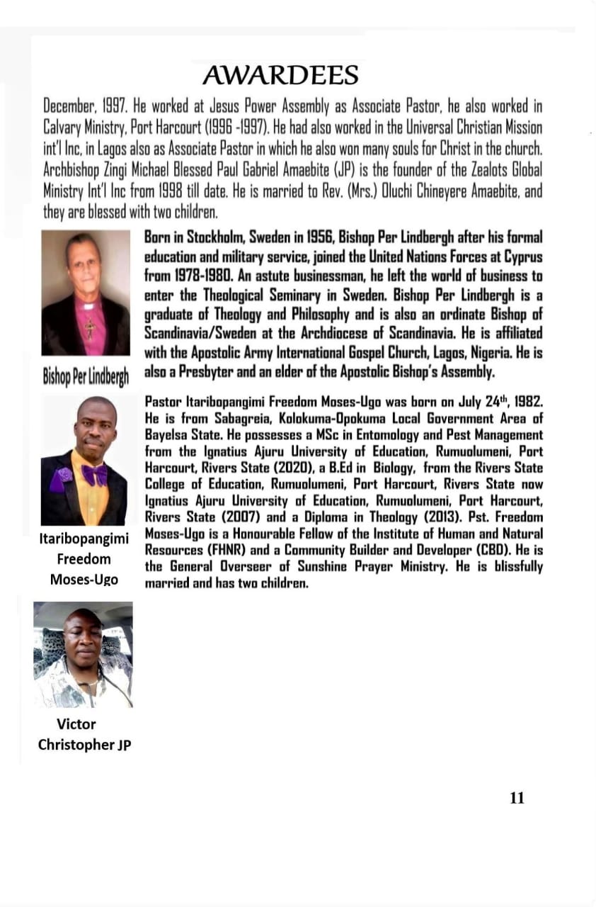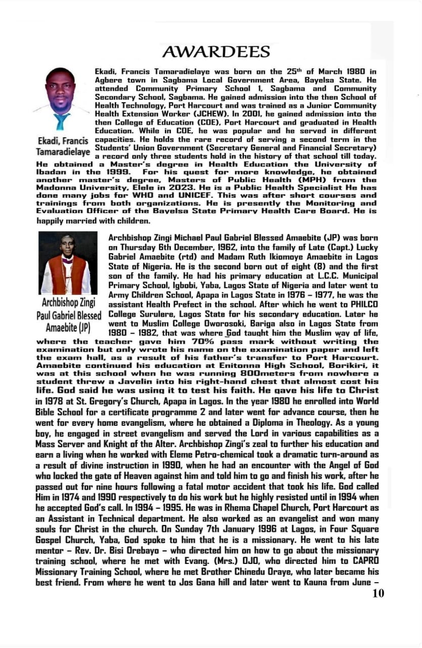 The, Founder, Chairman and Chancellor of the university Cardinal Prof Alari Ebipre Jacob,on behalf of Management, Directors, Ambassadors, Awardees and Students further invites the general public to grace the event.