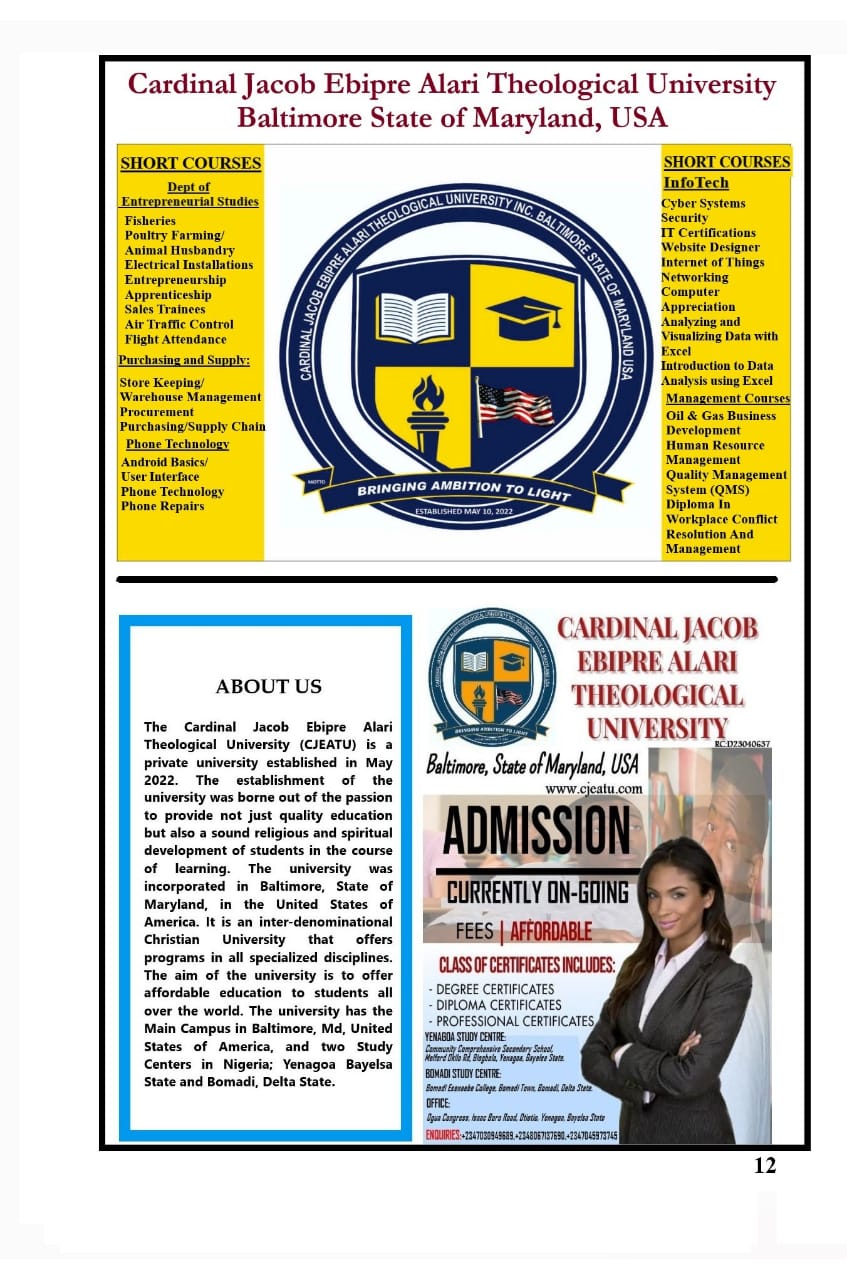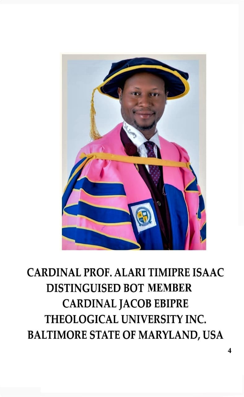 By Cardinal Jacob Ebipre Alari Theological University, Baltimore State of Maryland, USA.